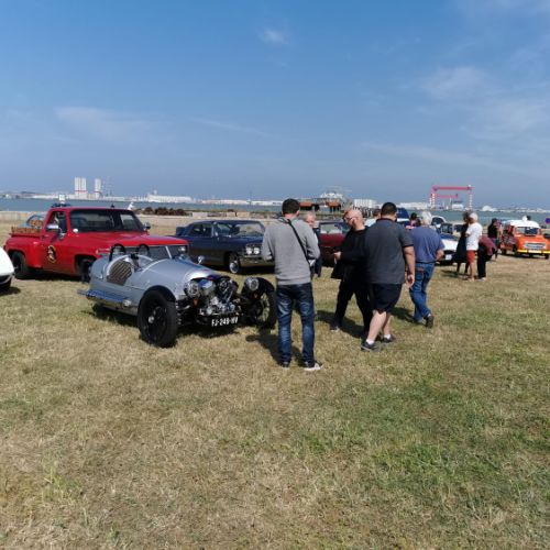 Un spot magnifique puisque les véhicules exposés sont stationnés sur le terre-plein du débarcadère de St Brévin,face à l'estuaire