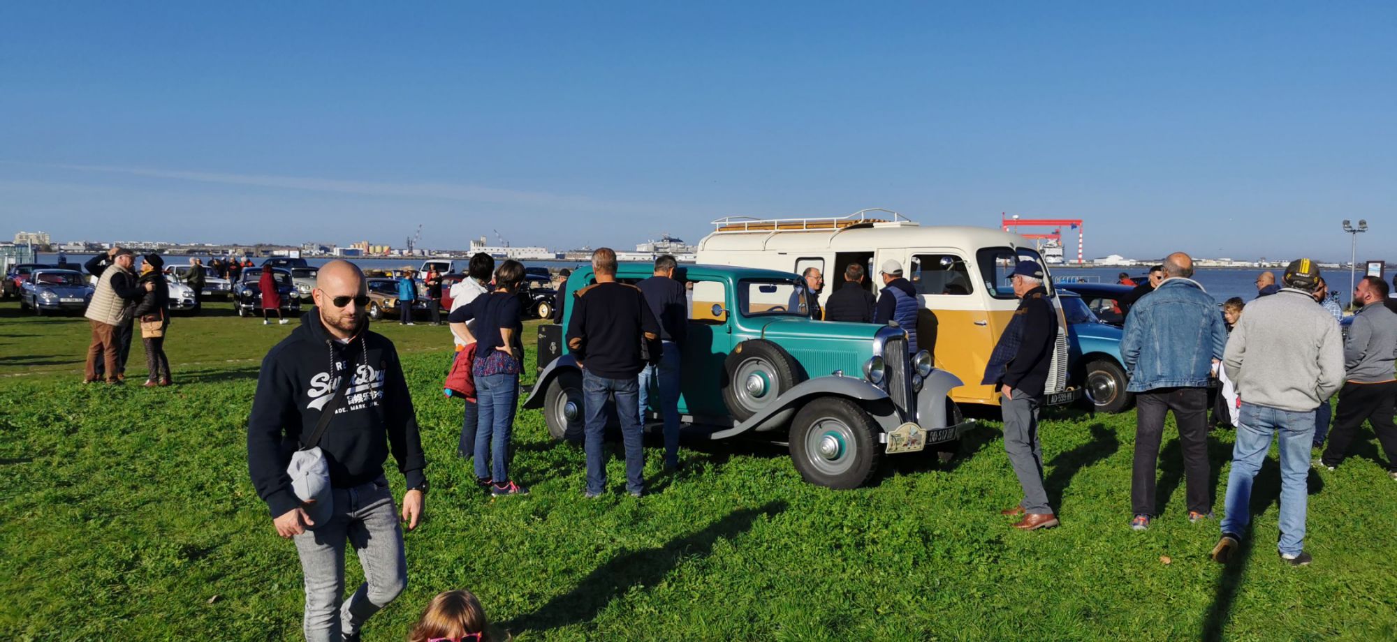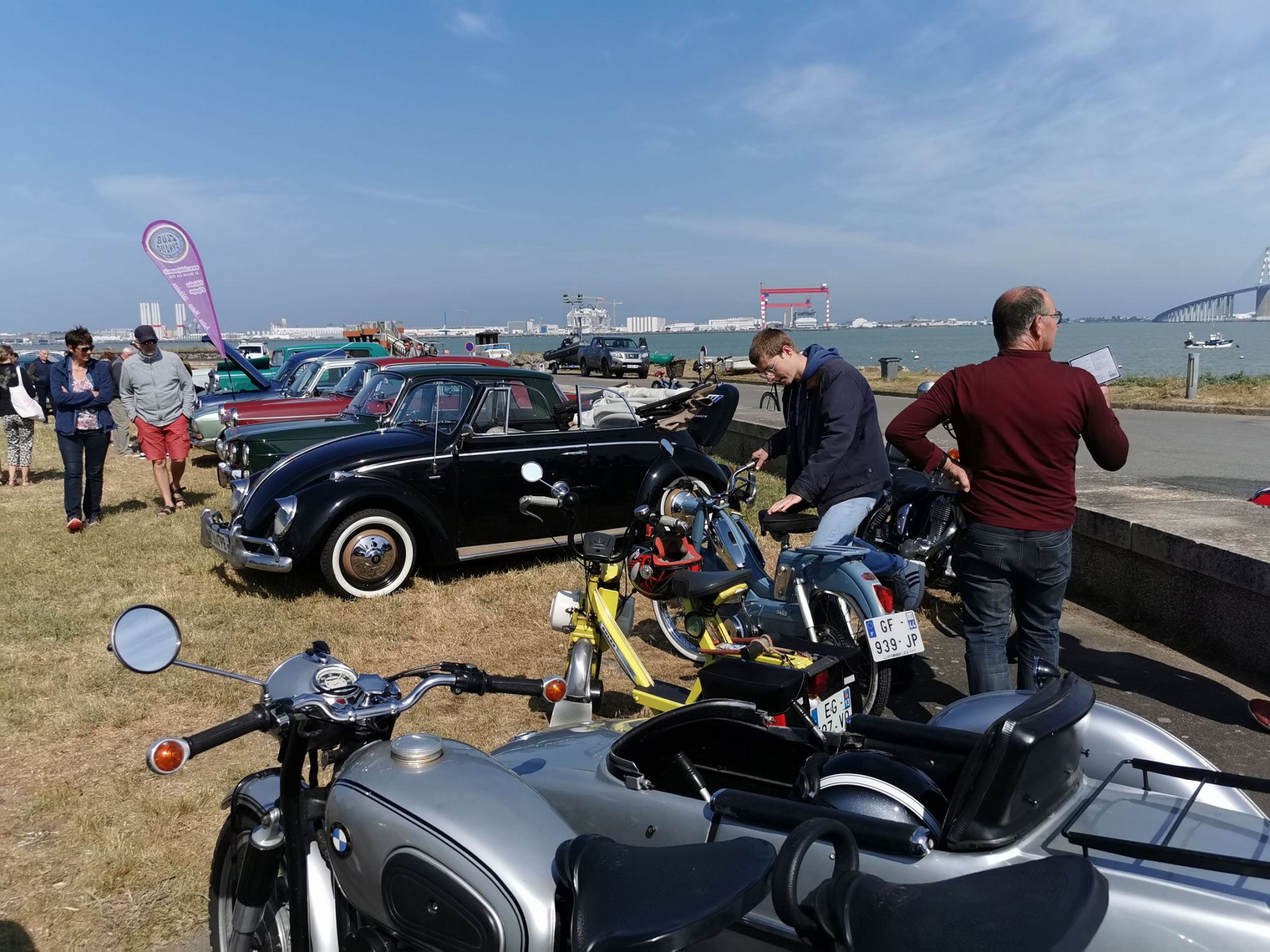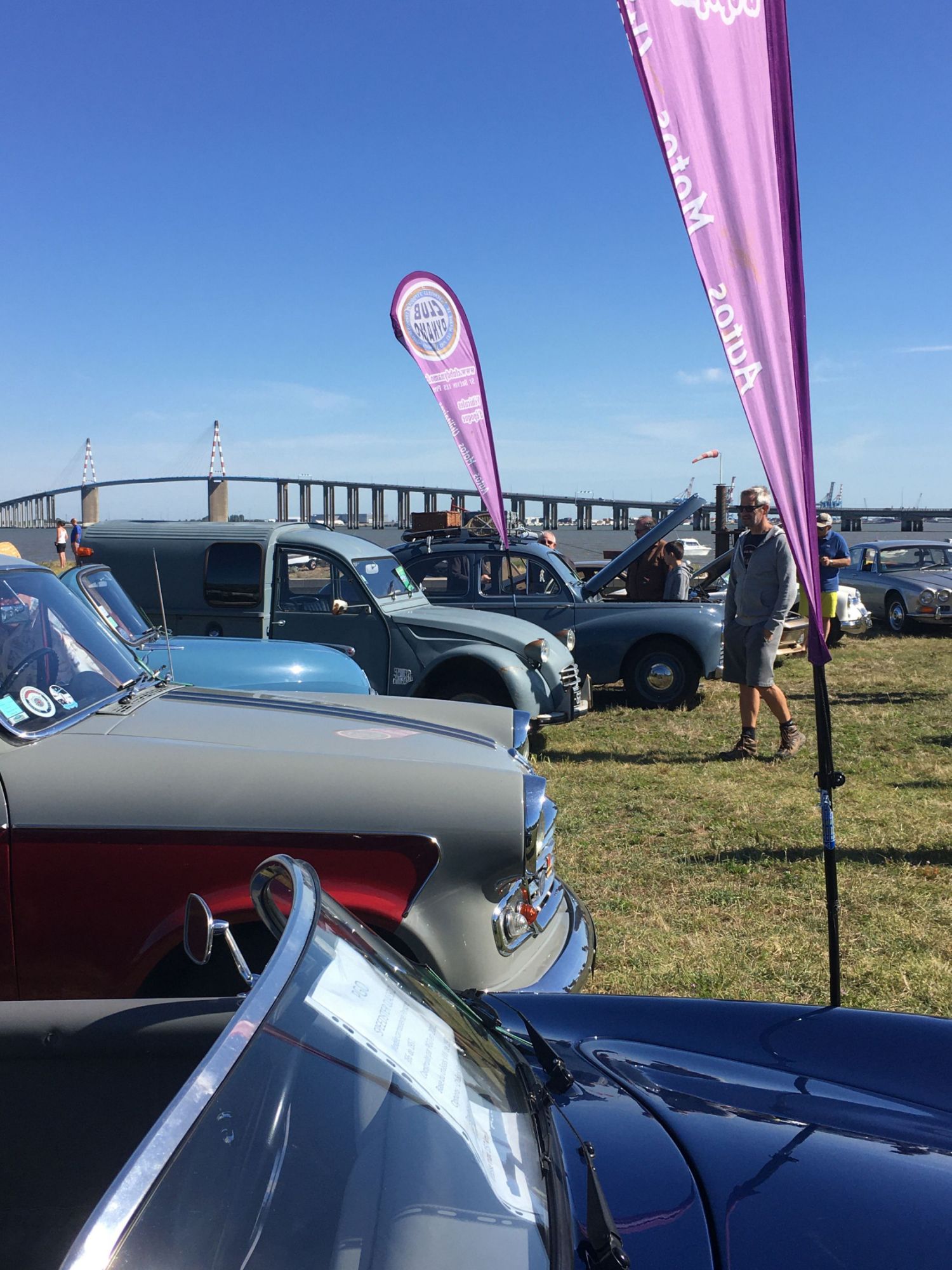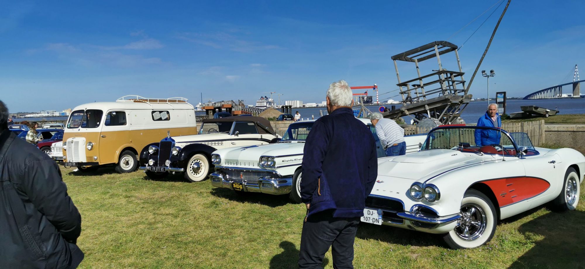 Un spot magnifique puisque les véhicules exposés sont stationnés sur le terre-plein du débarcadère de St Brévin,face à l'estuaire