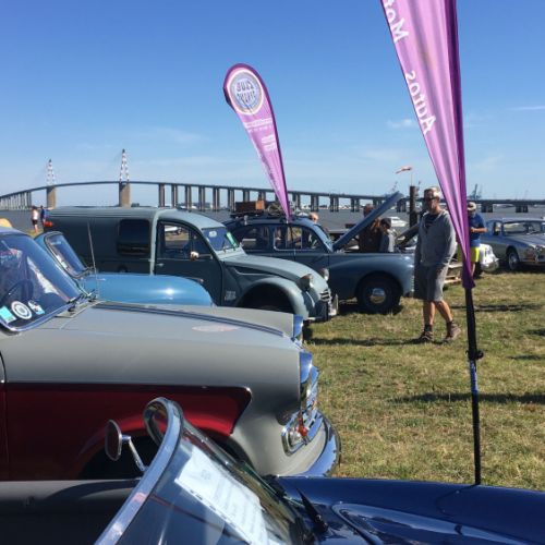 Un spot magnifique puisque les véhicules exposés sont stationnés sur le terre-plein du débarcadère de St Brévin,face à l'estuaire